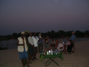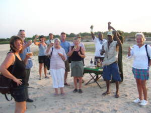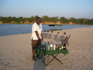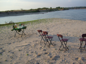You are invited by our Manager, and our staff sets up a little sundowner bar on one of the many sandbanks on the Rufiji River