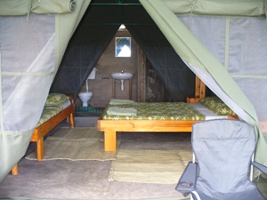 The camp operates with six tents just like the ones in the main camp along the Rufiji River, as well as a Bar and Restaurant