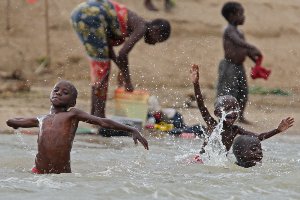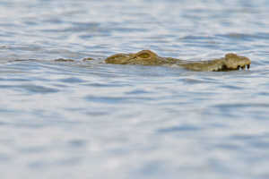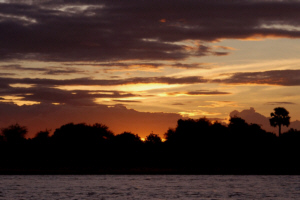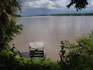tourists doing a boat safari. As soon as the river leaves the Selous Game Reserve, the first village shows up on its banks, with fishing canoes and village farms. The Rufiji is free of swamps such as the Zambezi